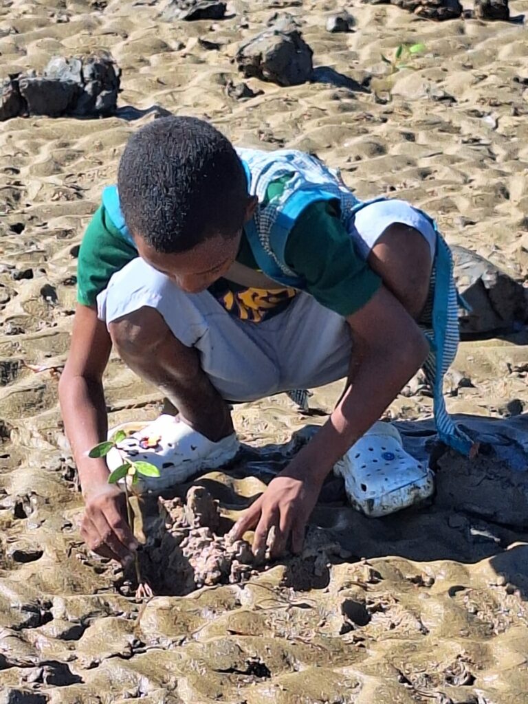 Les sorties pédagogiques à Mangily m’ont beaucoup marqué, car c’est là que nous apprenons le plus de choses, comme l’observation des tortues ou le cycle de l’eau. Concernant les rencontres, j’ai été touché par l’implication des habitants d’Ankalika qui ont été sensibilisés, ainsi que par ceux qui nous aident à nettoyer la plage et à éduquer les autres, comme les Zana-driaky (l’association des pêcheurs locaux). J’apprécie aussi énormément quand nos parents participent aux plantations avec nous et apprennent à connaître les mangroves, comme le père de Francelah. Je me souviens également de la venue de M. Franck Grangette au tout début du projet, lors de la mise en place des premières activités.